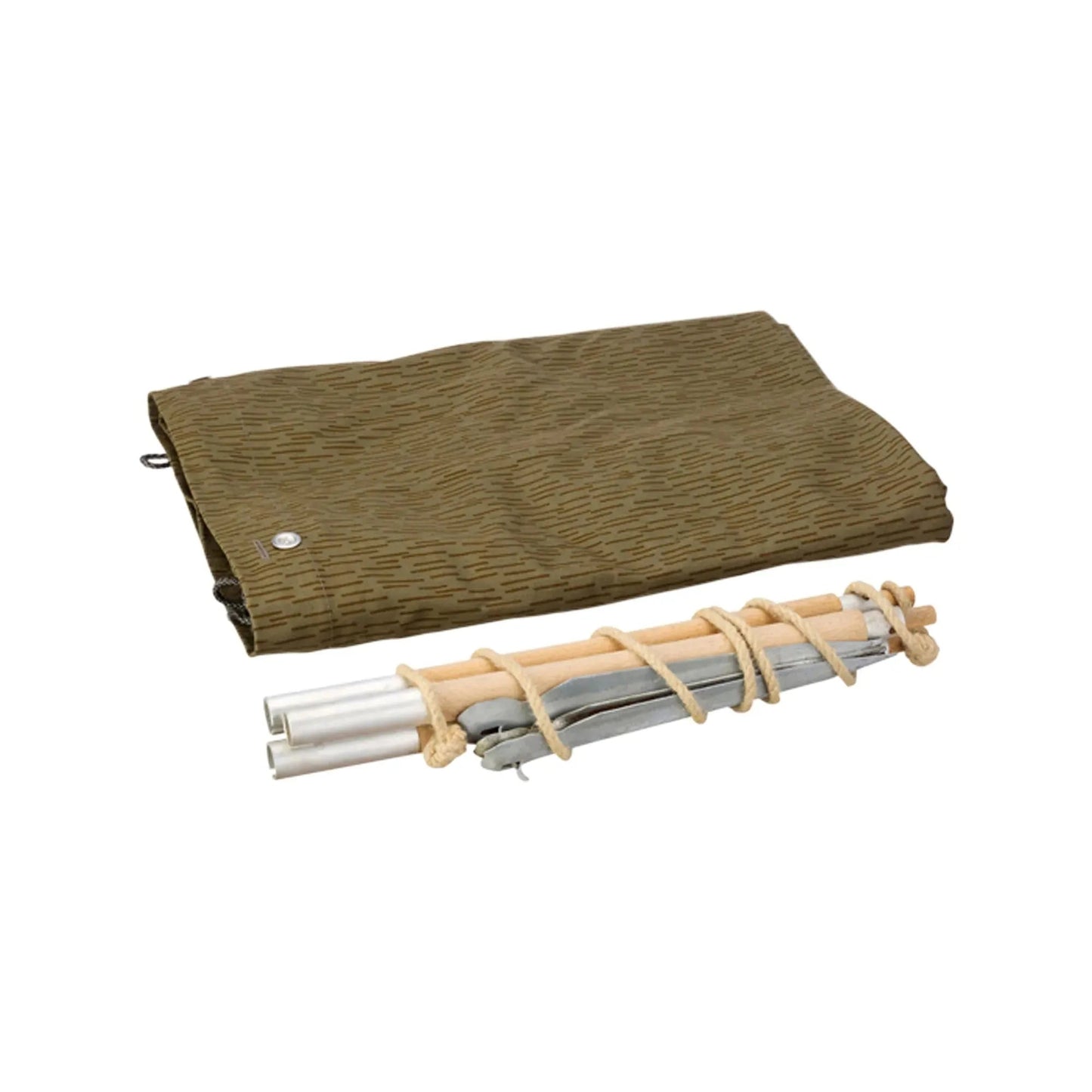 Die seitlichen Knöpfe ermöglichen das Verbinden mehrerer Zeltbahnen, etwa für größere Tarp-Konstruktionen oder einfache Biwaklösungen. Durch die verstärkten Ösen an den Ecken lässt sich die Plane sicher abspannen – ideal bei Wind und Regen. Das imprägnierte Baumwollgewebe macht sie wasserabweisend und langlebig, während das Packmaß angenehm kompakt bleibt.